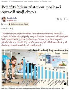 Stačila jedna věta a zaměstnanci mohli přijít o benefity. Senát naštěstí zasáhl a spornou formulaci vypustil. Poslanecká sněmovna včera opravený návrh schválila.