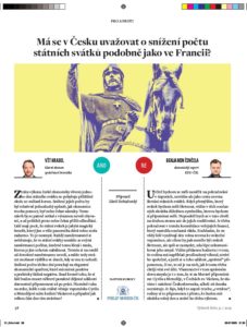 Ale když by to mohlo být výhodné pro stát nebo zaměstnavatele, tak to je jiná a najednou se začínají objevovat články, jestli bychom se neměli inspirovat například Francií, která uvažuje o snížení počtu státních svátků.